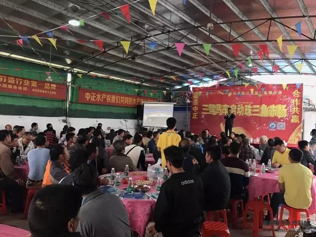 2017年4月12日,珠三角地區(qū)迎來(lái)一次大范圍降雨降溫,盡管如此,仍然有不少養(yǎng)殖戶(hù)從珠三角各地趕來(lái)中山板芙,參加海南中正水產(chǎn)科技有限公司(以下簡(jiǎn)稱(chēng)中正)珠三角推介會(huì)。養(yǎng)殖戶(hù)參會(huì)熱情高漲、場(chǎng)面火爆,原本計(jì)劃150人的推廣會(huì),總共來(lái)了超過(guò)220人,會(huì)場(chǎng)座無(wú)虛席。