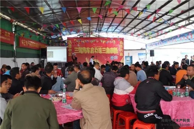 近年來,養殖環境的持續惡化直接影響到對蝦養殖戶的養殖效益,尤其是在珠三角這樣的傳統養殖區,養殖狀況一年不如一年,對蝦養殖發展遇到瓶頸。為改變當前現狀,提升養殖戶的盈利能力,使對蝦養殖可持續發展,4月12日,海南中正水產科技有限公司(以下簡稱“中正”)帶著公司的 “三架馬車”——羅氏沼蝦苗、南美白對蝦蝦苗、斑節對蝦苗在中正中山基地召開推薦會,并特邀廣東海洋大學朱春華教授、中山大學黃志堅教授分享當前羅氏沼蝦、南美白對蝦所遇到的困難、問題及解決方案。此次會議共吸引了包括養殖戶在內200余人參加,中正董事長雷夏雨先生、中正總經理王平先生、珠江水產研究所生物漁藥創新示范中心廖國禮副主任等出席此次會議。