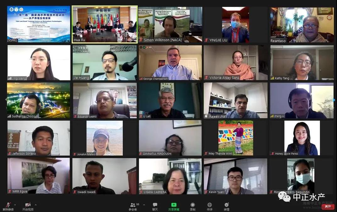 12月15-18日,中正對蝦育種工作室參加了農業農村部2020年“一帶一路”國家海水養殖技術培訓班(二期),該次培訓由農業農村部國際合作司和亞太水產養殖中心網(NACA)主辦,中國水產科學研究院黃海水產研究所農業農村部“一帶一路”海水養殖技術培訓基地和亞太水產養殖中心網秘書處承辦,來自亞洲、歐洲、非洲和拉丁美洲32個國家和地區的高校、科研院所、政府部門、行業協會和企業的321位學員進行了為期4天的線上學習交流。