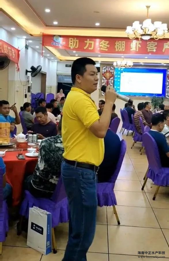 廣東中正總經理羅崗給到場客戶詳細介紹了海南中正公司的規模、硬件及嚴謹的育苗手法,針對客戶們對冬棚蝦的苗種選擇的擔心,羅總從種蝦的儲備量及生產給了客戶有力的回應,增強客戶們對中正蝦苗的信心!最后,還感謝橫欄合作伙伴順興水產的對此次活動的鼎力支持。