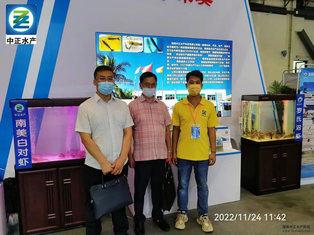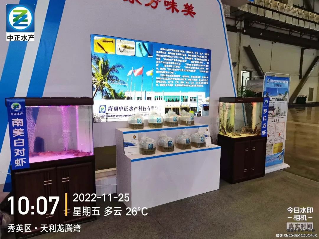 海南中正水產科技有限公司作為海南省對蝦養殖協會的會長單位參展博覽會,同時作為現代農業龍頭企業的代表在東方展區參展,展出了自主繁育的南美白對蝦蝦苗和種蝦。